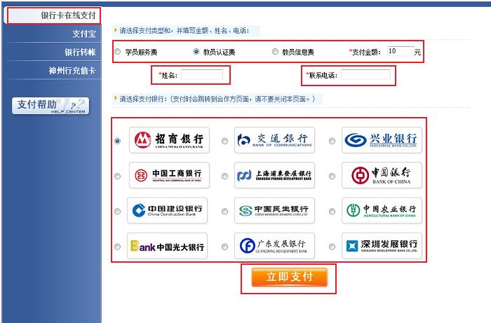 1、在厦门补习网支付中心页面选择“快钱”,确定支付类型、金额并填写您的姓名、电话后,点击“立即支付”